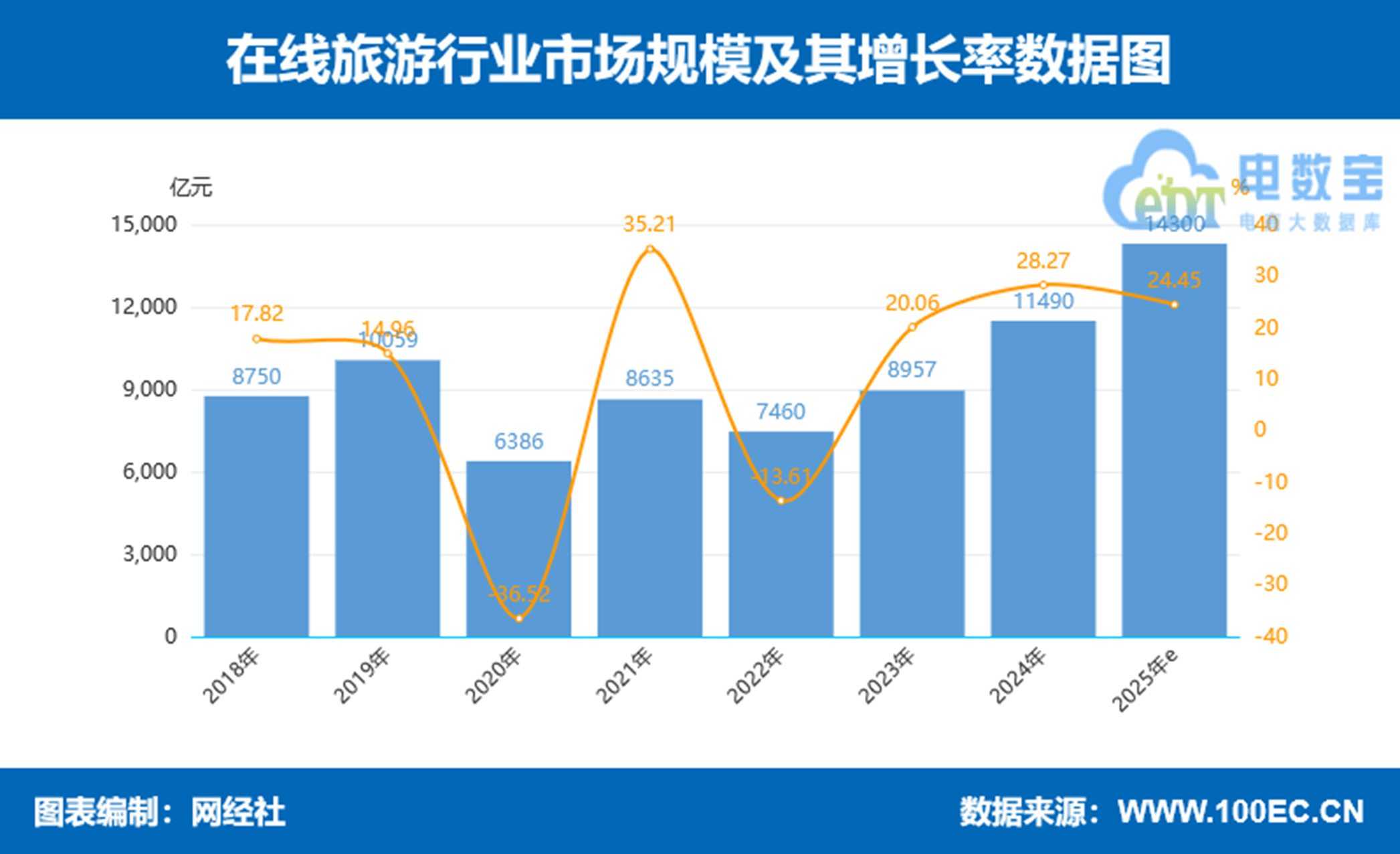 另据我国“一带一路”TOP10影响力社会智库网经社电子商务研究中心发布的《2024年度中国移动出行市场数据报告》显示,2024年在线年市场交易规模(增速)分别为10059亿元(14.96 % )、 6386亿元(-36.52% )、8635亿元(35.21%)、7460亿元(-13.61%)、 8957亿元( 20.07% )。据估算,2025年在线亿元。