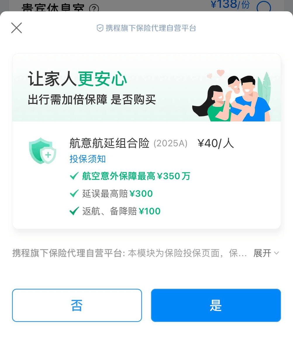 实测中还发现,携程APP在支付页面中默认勾选了“无保障”,用户需主动选择才会添加保险,默认总价为958元。